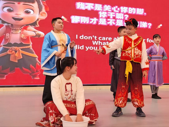 一年级以合唱《Hello & Baby Shark》《Big Big World》带来萌趣开场,稚嫩声线里满是对英语的热爱;五年级用情景剧《Ne Zha》《The Mid-Autumn Festival》将中国传统神话故事与英语表演相结合,既展现了英语的表现力,又弘扬了传统文化;二年级的说唱串烧《A Little Love》节奏轻快,将日常英语融入动感旋律;六年级则以《Qiu Shaoyun》《Lu Xun》《Hua Mulan》主题演讲搭配才艺秀,让红色故事、经典人物通过英语传递出别样感染力;四年级的故事串烧《Monkeys’ Adventures & A Brave Heroine》带大家走进奇妙的英语世界;三年级合唱《The Hokey Pokey & I Can》,整齐的歌声体现出他们扎实的英语基础和集体凝聚力。最后,一首动听的《Proud of You》温暖全场。