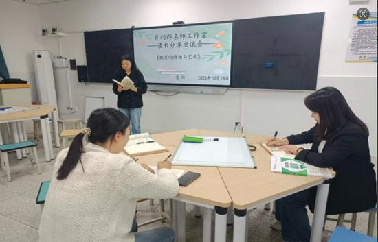 绵阳新闻网讯 为了提升肖利群英语工作室教师的教学素养,丰富教学艺术,近日,绵阳市万达学校肖利群名师工作室举办了以“探寻教育本真 点亮教学智慧”为主题的关于肖川教授《教育的情趣与艺术》一书的读书分享会活动。本次活动旨在通过深度阅读与交流,引导老师们从不同的视角重新审视教育的本质,反思自身的教学实践,从而在英语教学中注入更多“情趣”与“艺术”,实现师生共同的生命成长。本次活动由工作室领衔人肖利群老师主持,工作室成员凌玲老师分享读书心得,工作室全体成员参与。