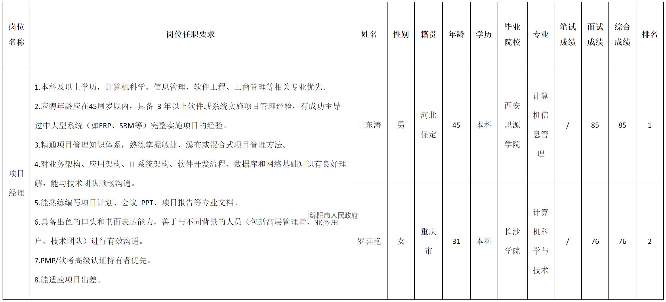 根据四川虹信软件股份有限公司发布的招聘公告及招聘相关规定,现将测试成绩予以公示。