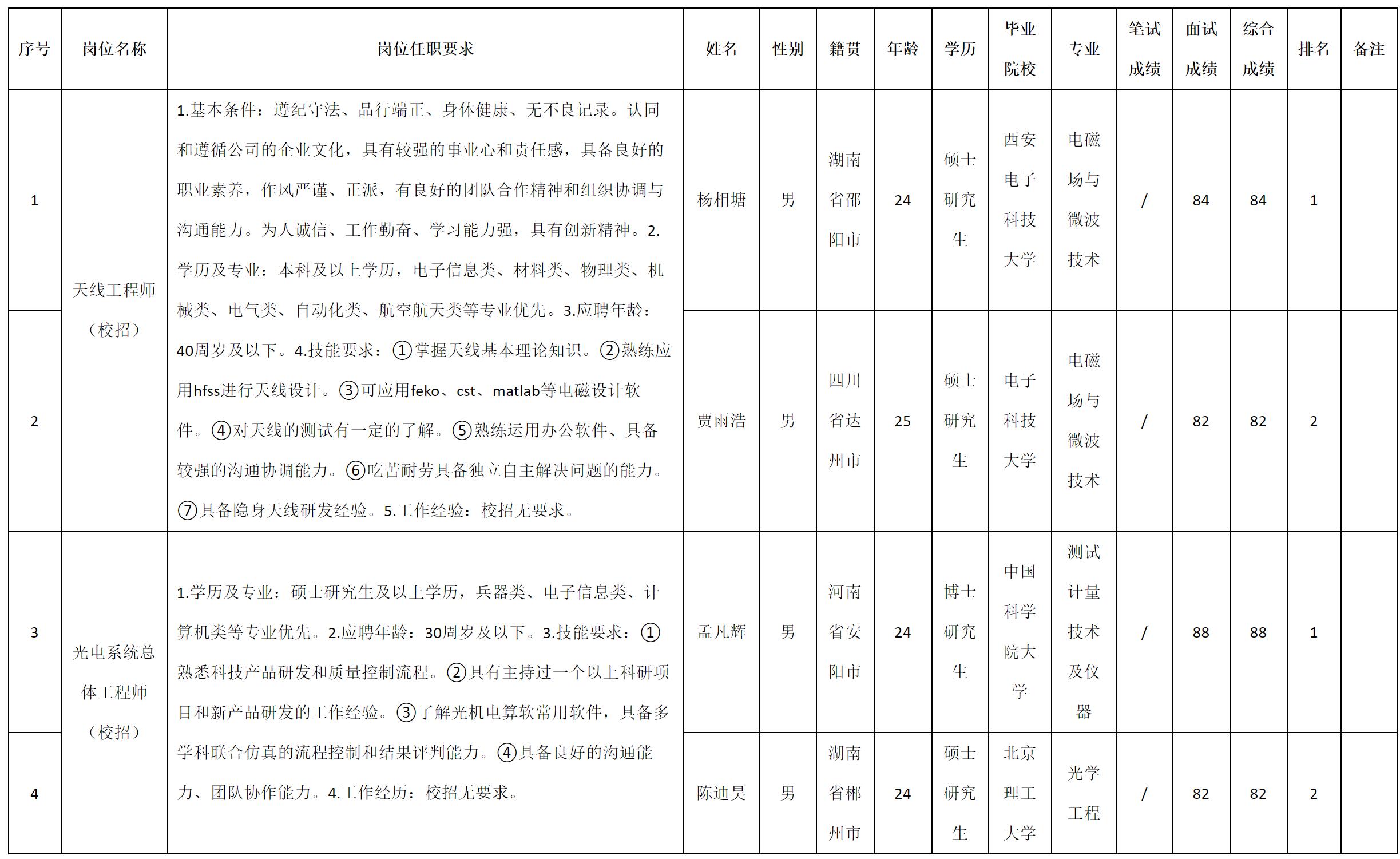 根据四川九洲电器集团有限责任公司发布的招聘公告及招聘相关规定,现将测试成绩予以公示。