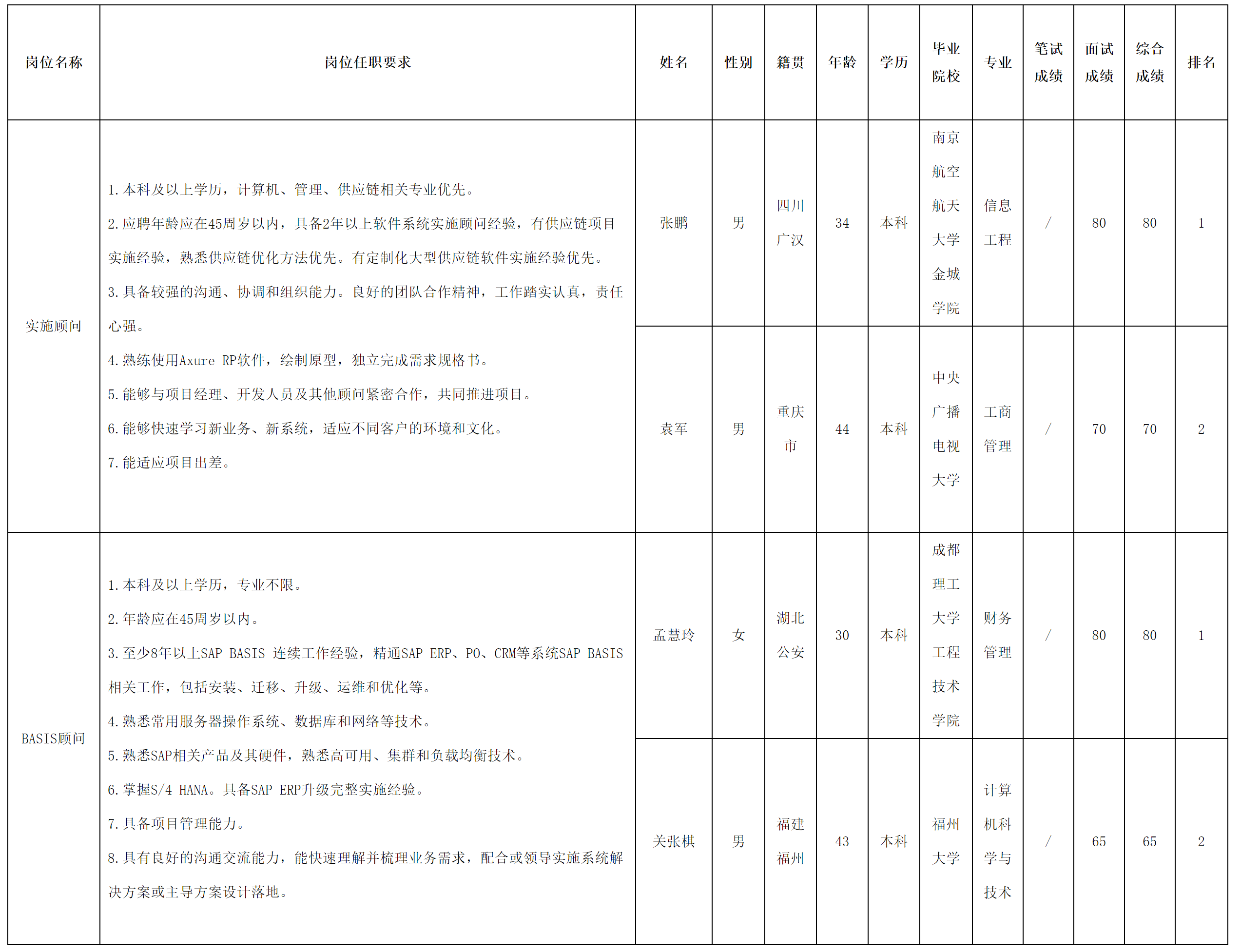 根据四川虹信软件股份有限公司发布的招聘公告及招聘相关规定,现将测试成绩予以公示。