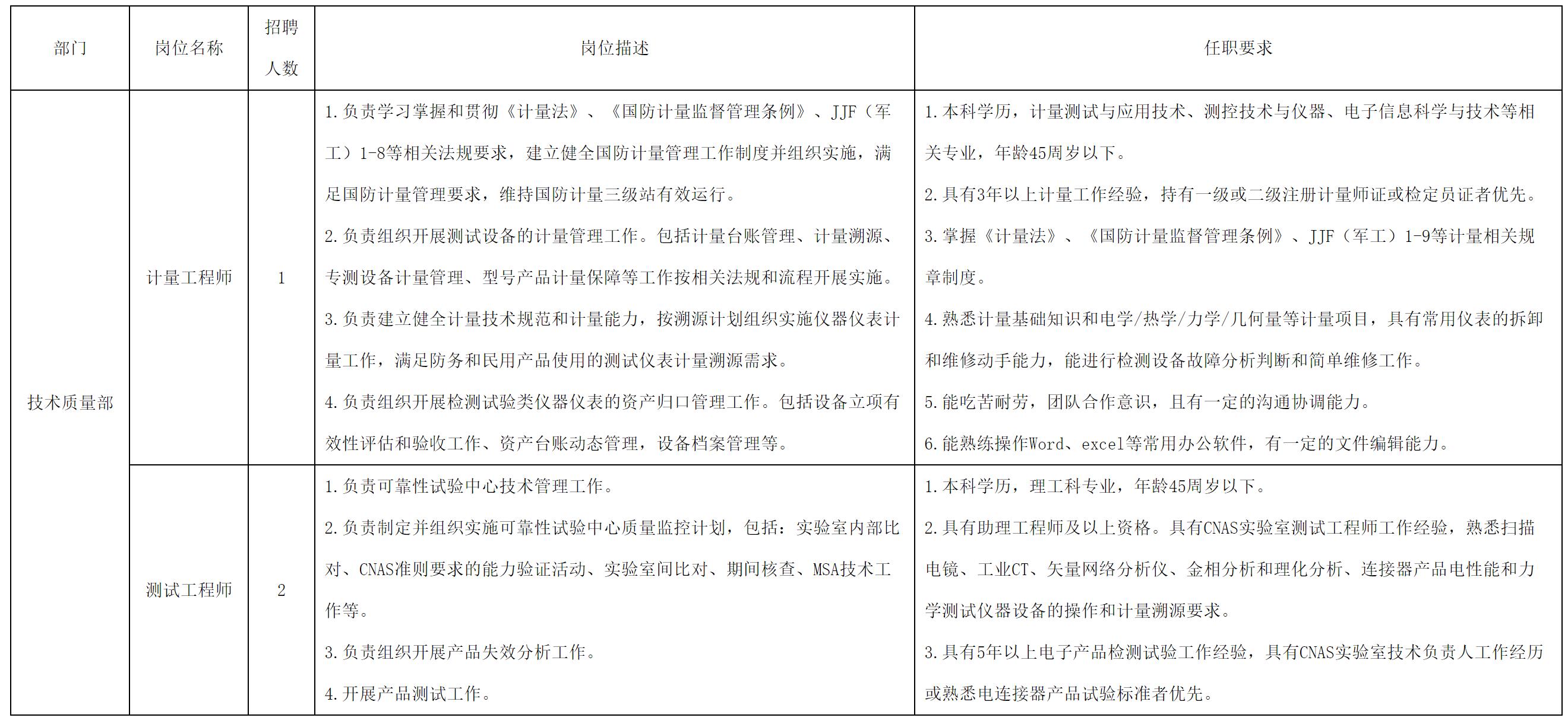 现因公司经营发展需要,现面向长虹控股集团内、外部诚聘计量工程师等岗位人员,具体岗位招聘信息公告如下: