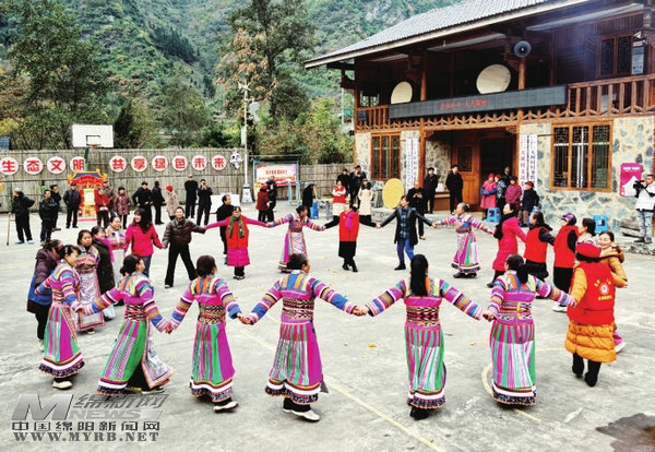 木皮藏族乡关坝村村民跳起欢乐的圆圆舞。 胡宇 摄
