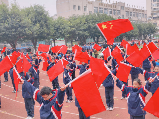 红旗飘扬凝斗志,誓言铿锵表决心