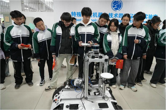 在西南科技大学国防科技学院的实验室中,学生们围绕用于国防装备研发的实验装置展开探讨,从材料结构到系统集成,从原理到应用,抽象的课本知识变得可触可感。而在机器人实训平台,学生亲手操作可在极端环境下作业的机器人,理解工程思维如何服务于国家与社会的真实需求。