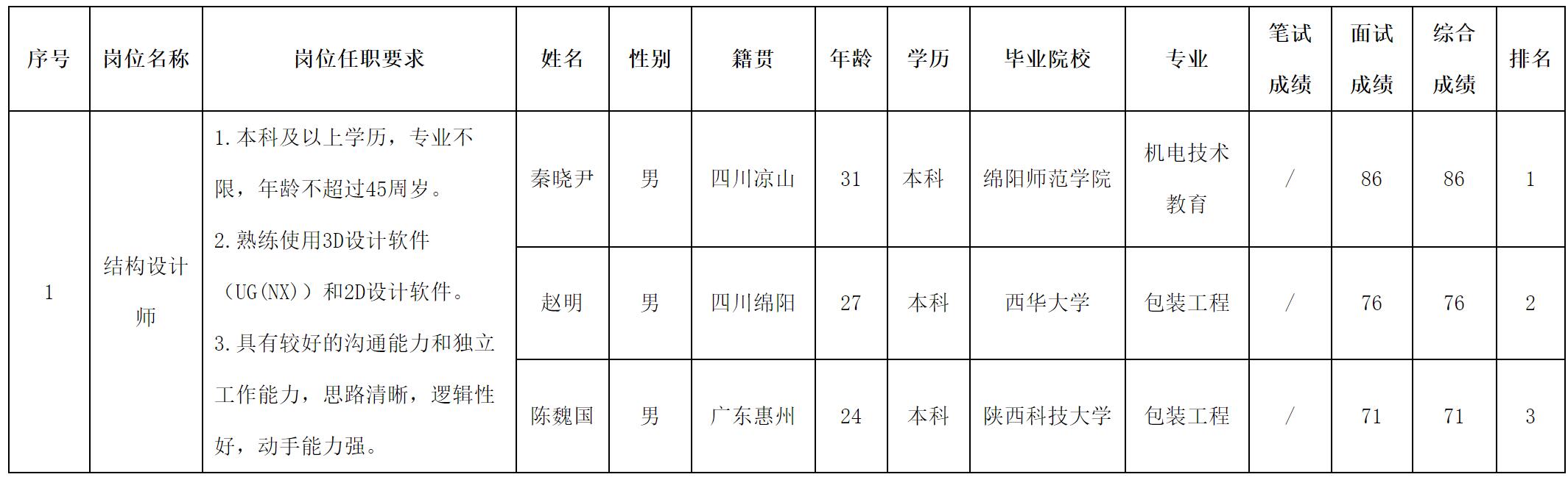 根据四川长虹新网科技公司发布的招聘公告及招聘相关规定,现将测试成绩予以公示。