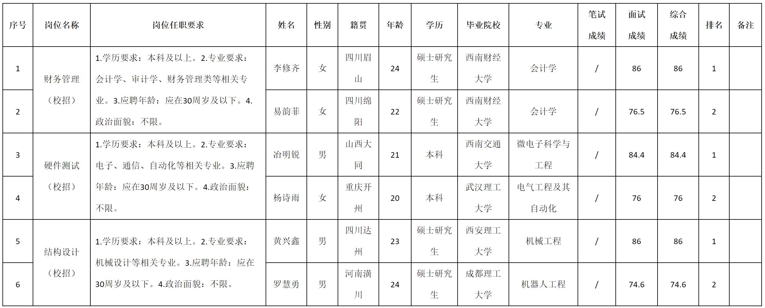 根据四川九州电子科技股份有限公司发布的招聘公告及招聘相关规定,现将测试成绩予以公示。
