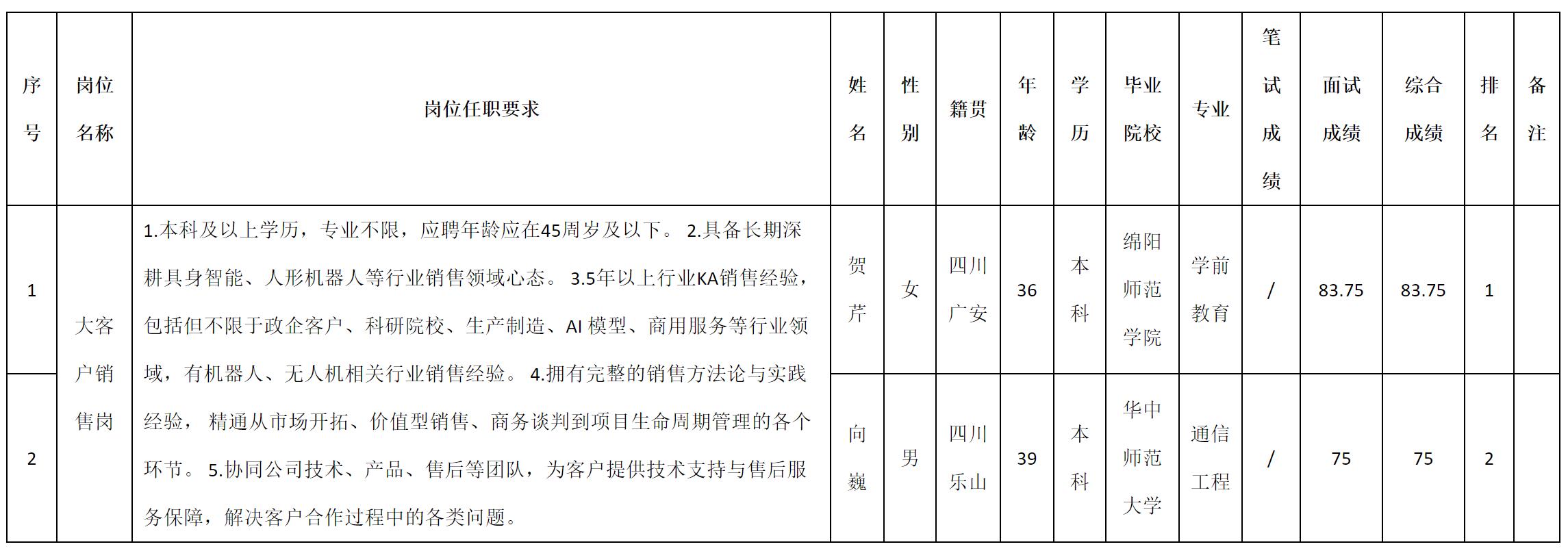 根据四川九洲投资控股集团有限公司软件与数据智能军团发布的招聘公告及招聘相关规定,现将测试成绩予以公示。