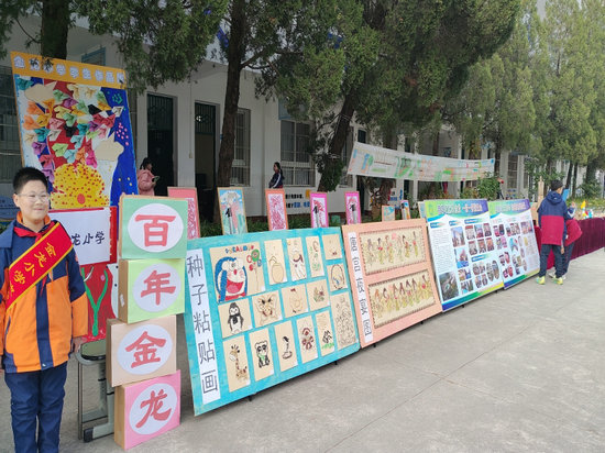 在黎雅学区课后服务成果展演的舞台上,金龙小学学子带来的舞蹈节目《我心中的河》,以深情的演绎流淌出对家国、对生活的真挚热爱,成为整场演出的一大亮点。舞台之外,该校精心布置的两大主题展板,更是全方位展现了课后服务的丰硕成果。从百年底蕴、书香校园、党建引领、实践赋能四个维度,系统呈现了该校课后服务的办学根基与特色路径,记录了学子们在课后时光里的成长与蜕变。其中,孩子们的手工作品,匠心独运,巧夺天工,生动诠释了金龙学子的创造力与文化自信。