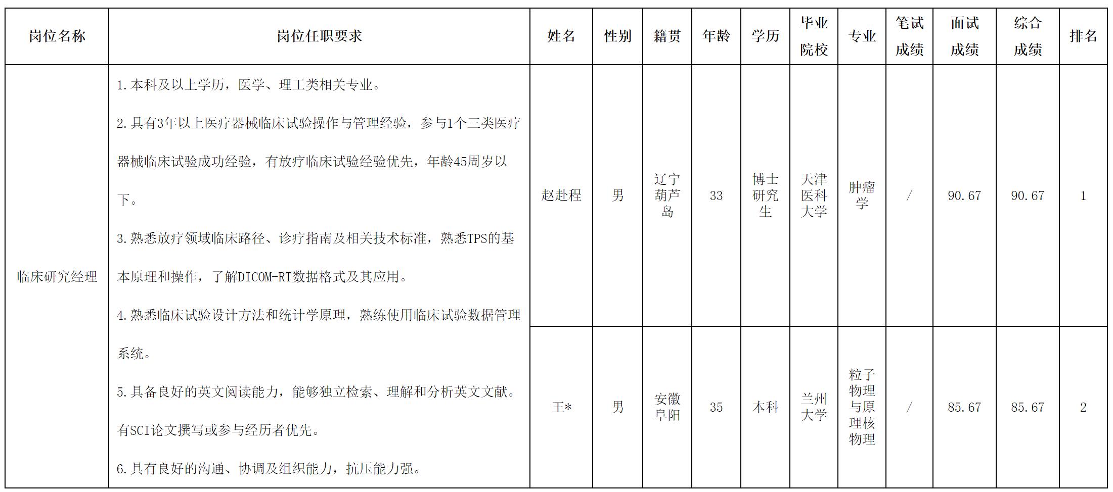 说明:面试成绩与综合成绩满分均为100分。