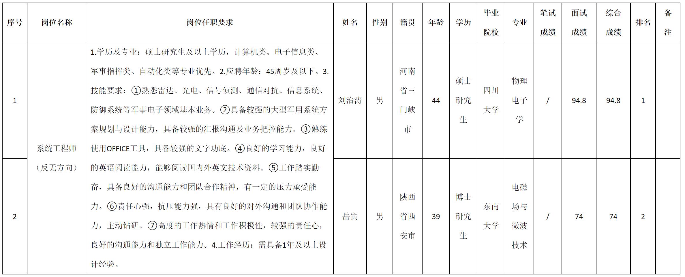 根据四川九洲电器集团有限责任公司发布的招聘公告及招聘相关规定,现将测试成绩予以公示。