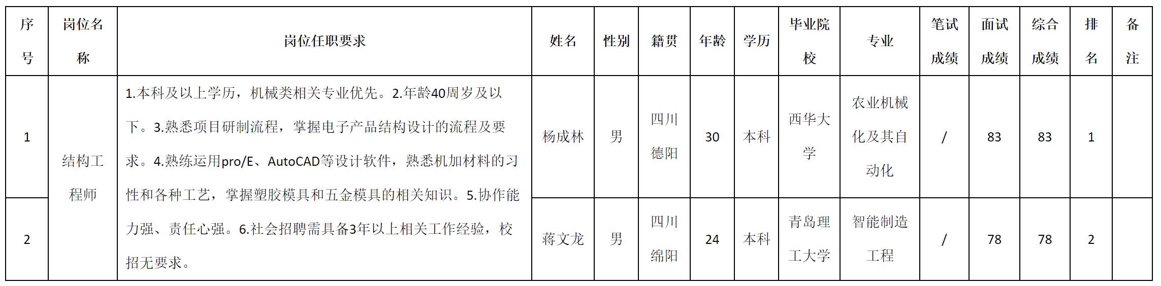 根据四川九洲光电科技股份有限公司发布的招聘公告及招聘相关规定,现将测试成绩予以公示。