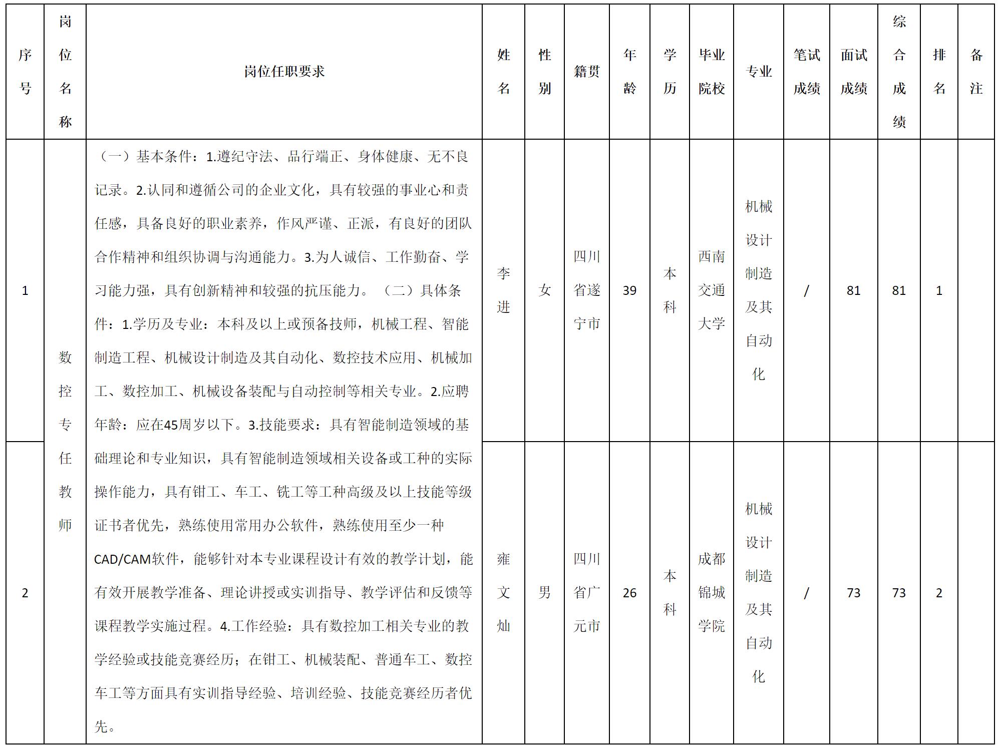 根据四川九洲教育投资管理有限公司发布的招聘公告及招聘相关规定,现将测试成绩予以公示。