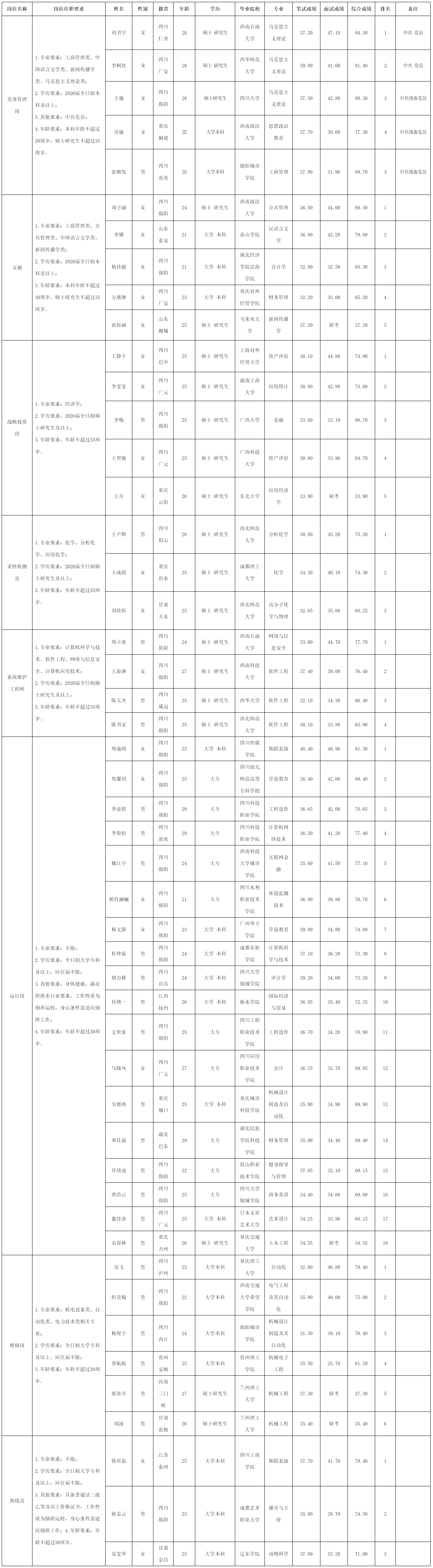根据绵阳市水务(集团)有限公司发布的招聘公告及招聘相关规定,经笔试、面试等程序,现将笔试(面试)成绩予以公示。