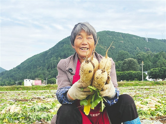 高渠镇章邦村村民采收萝卜。记者 彭紫薇 摄
