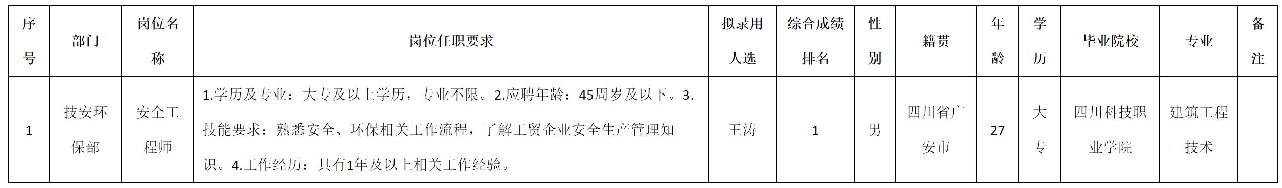 根据四川九州光电子技术有限公司发布的招聘公告及招聘相关规定,经测试、考察、体检等程序,拟录用王涛同志到四川九州光电子技术有限公司工作,现予以公示,具体情况如下: