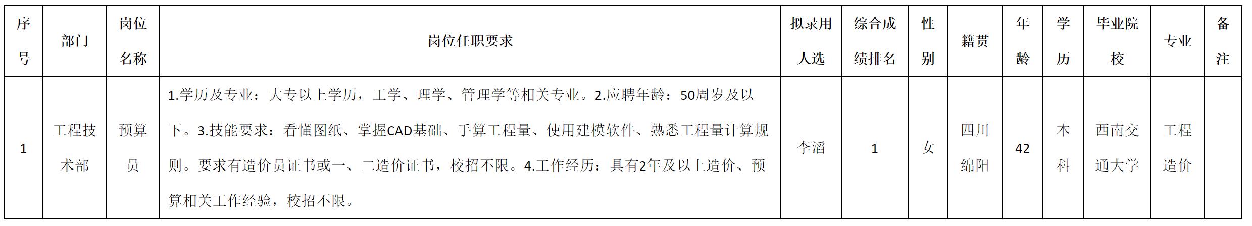 根据四川九洲建筑工程有限责任公司发布的招聘公告及招聘相关规定,经测试、考察、体检等程序,拟录用李滔同志到四川九洲建筑工程有限责任公司工作,现予以公示,具体情况如下:
