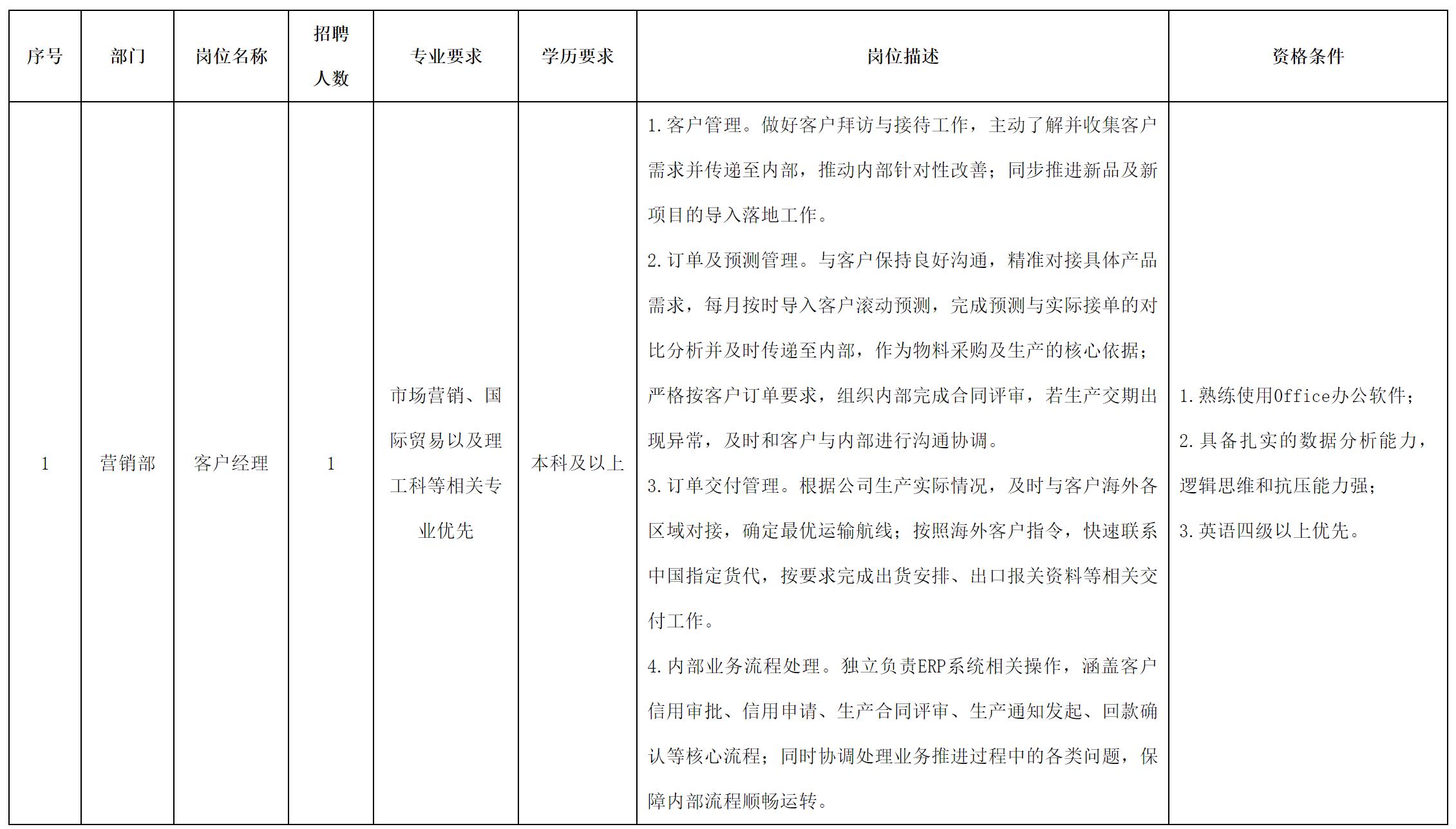 根据公司经营发展需要,现公开招聘客户经理1名:
