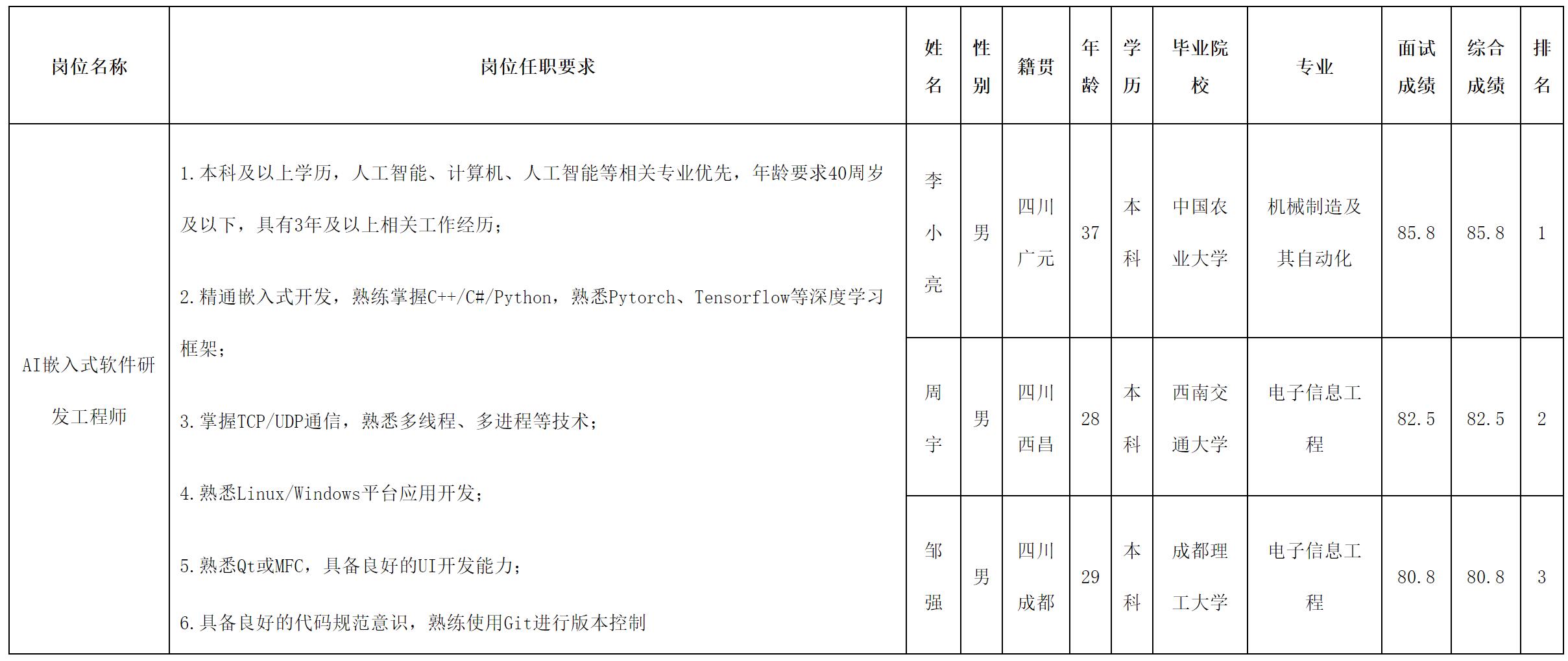 根据四川长虹虹微科技有限公司发布的招聘公告及招聘相关规定,现将测试成绩予以公示。