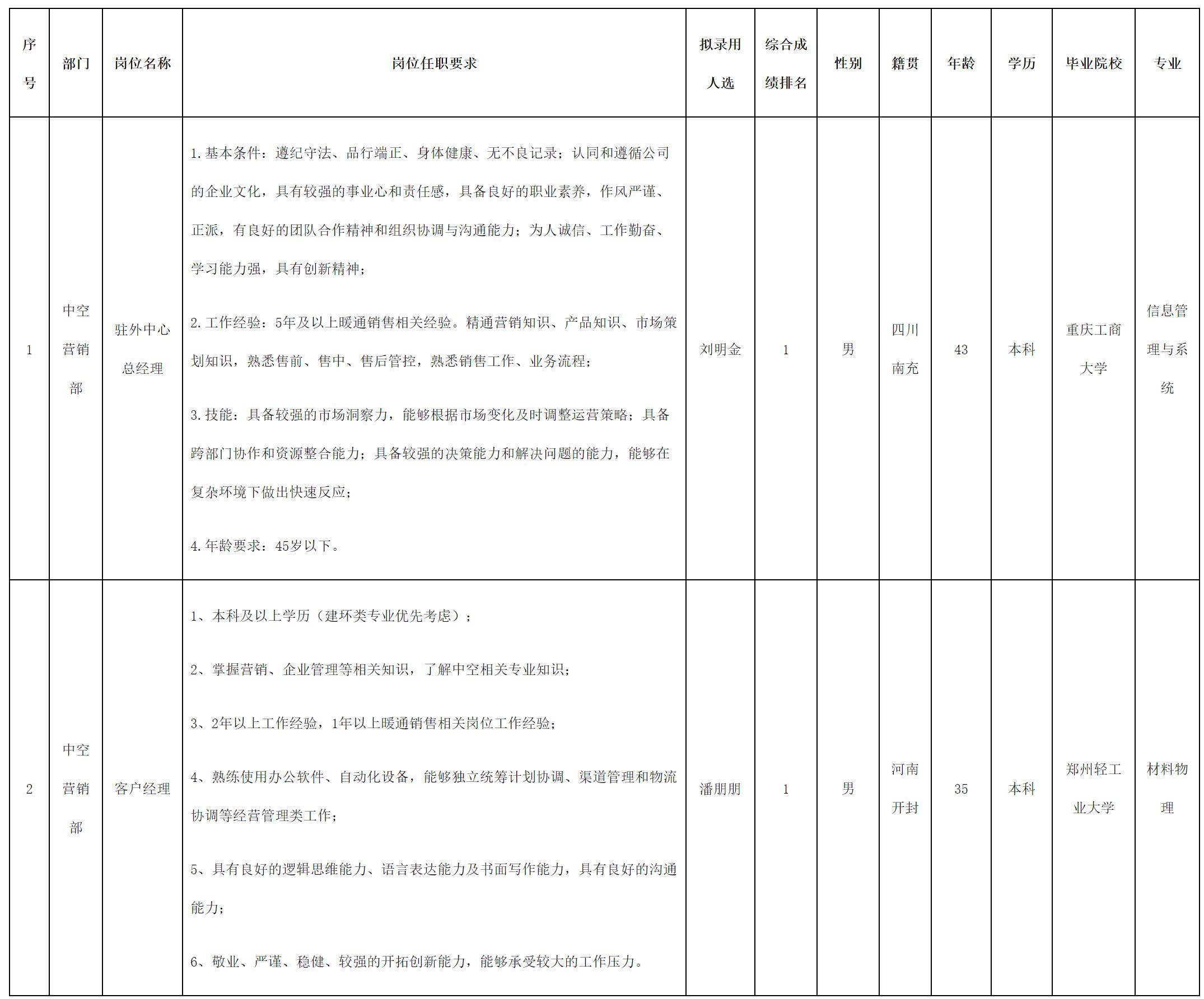 根据四川长虹空调有限公司发布的招聘公告及招聘相关规定,经面试、测试、考察、体检,拟录用刘明金等同志到长虹空调工作,现予以公示,具体情况如下: