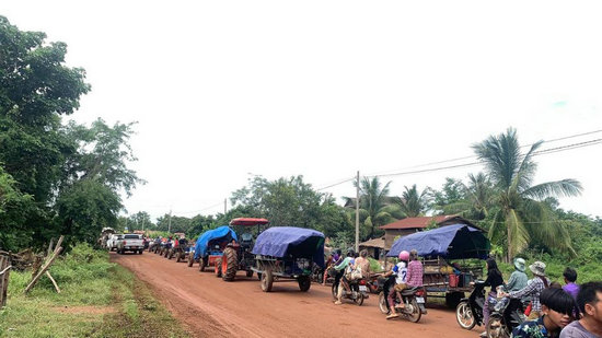 这是7月24日拍摄的柬埔寨奥多棉吉省边境地区正在撤离的民众。新华社发(帕尔林摄)