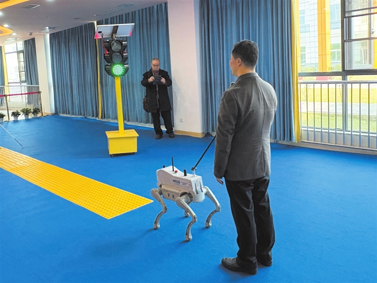 智能机器导盲犬出色表现的背后,是多项关键技术的协同突破。以小飞的“眼睛”为例,其头部集成的激光雷达与高清摄像头形成了有效互补,激光雷达负责快速构建环境三维地图并进行精准测距,而摄像头则通过AI算法识别物体属性,两者结合,使其能够清晰“理解”周围是行人、车辆还是障碍物,从而做出合理的相应决策。此外,它还配备了智能人机交互、自主定位导航等功能,遇到意外情况时,还能自动报警。“这款智能导盲机器人,具备精准环境感知、自主定位导航、自主避障、智能人机交互等核心功能,具有轻便携行、操作简单、亲和智能等特点,将成为未来视障人士人生旅途上的智能伙伴。”绵阳市五八机器人科技有限责任公司副总经理王钤表示。