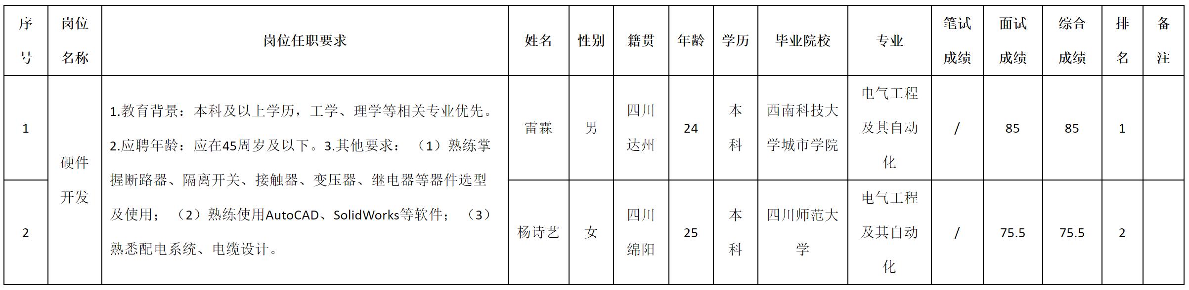 根据四川九州电子科技股份有限公司发布的招聘公告及招聘相关规定,现将测试成绩予以公示。