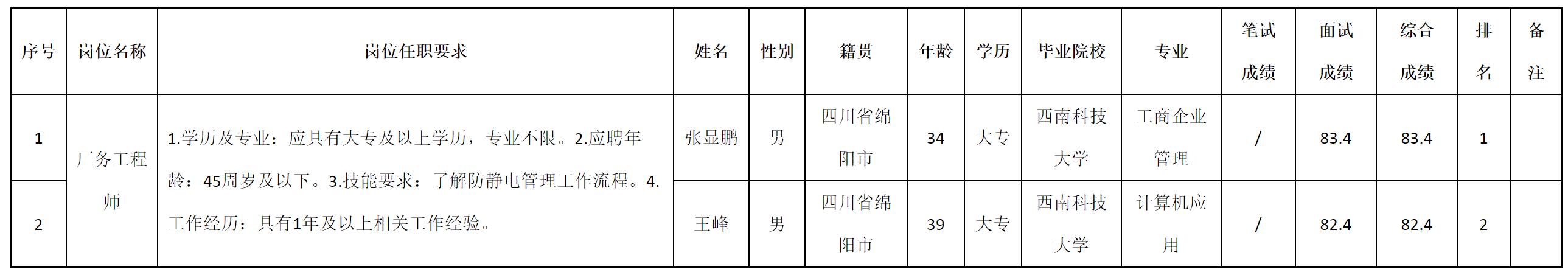 根据四川九州光电子技术有限公司发布的招聘公告及招聘相关规定,现将测试成绩予以公示。