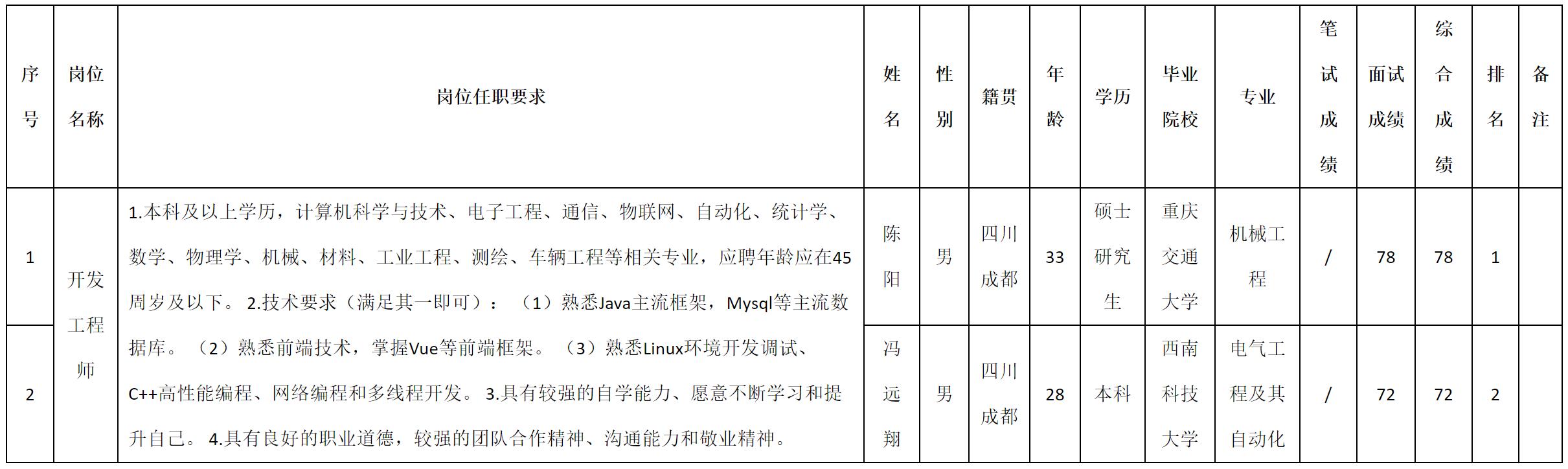 根据四川九洲投资控股集团有限公司软件与数据智能军团发布的招聘公告及招聘相关规定,现将测试成绩予以公示。