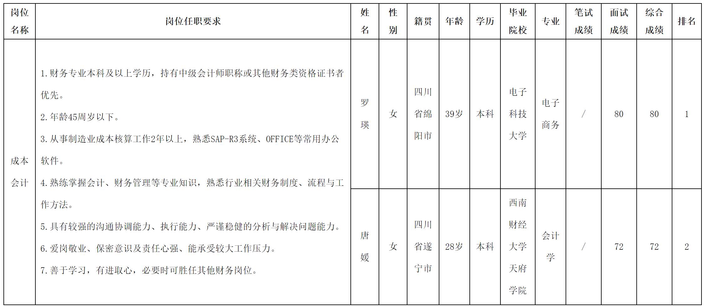 根据四川爱联科技股份有限公司发布的招聘公告及招聘相关规定,现将测试成绩予以公示。