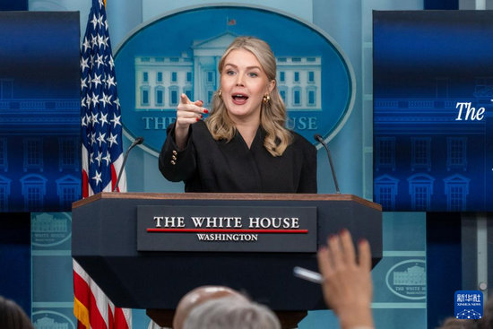 12月11日,在美国首都华盛顿白宫,白宫新闻秘书卡罗琳·莱维特出席记者会。 新华社发(李源清摄)