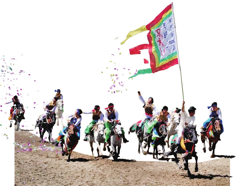 红原非遗马术文旅体验基地的工作人员在表演马术。 记者 邓勇 摄