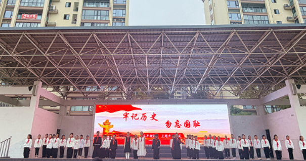 五年级九班学生代表陈啟翰、肖欣彤作了题为《历史与少年》的演讲。他们回顾民族奋斗历程,阐述铭记历史的意义在于以史为鉴、奋发自强,铿锵有力的话语深深感染了现场师生。