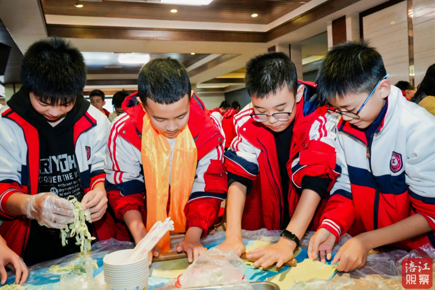 不远处的另一间桑学堂,桑叶的清香与面粉的麦香交织。学生们将鲜榨的桑叶汁揉进面团,绿色的面条在指尖成型。“自己做的桑叶面,特别有意义!”学生许景苡说,“既能亲手揉擀体验传统技艺,又能感受嫘祖文化底蕴,品尝到天然美味。”