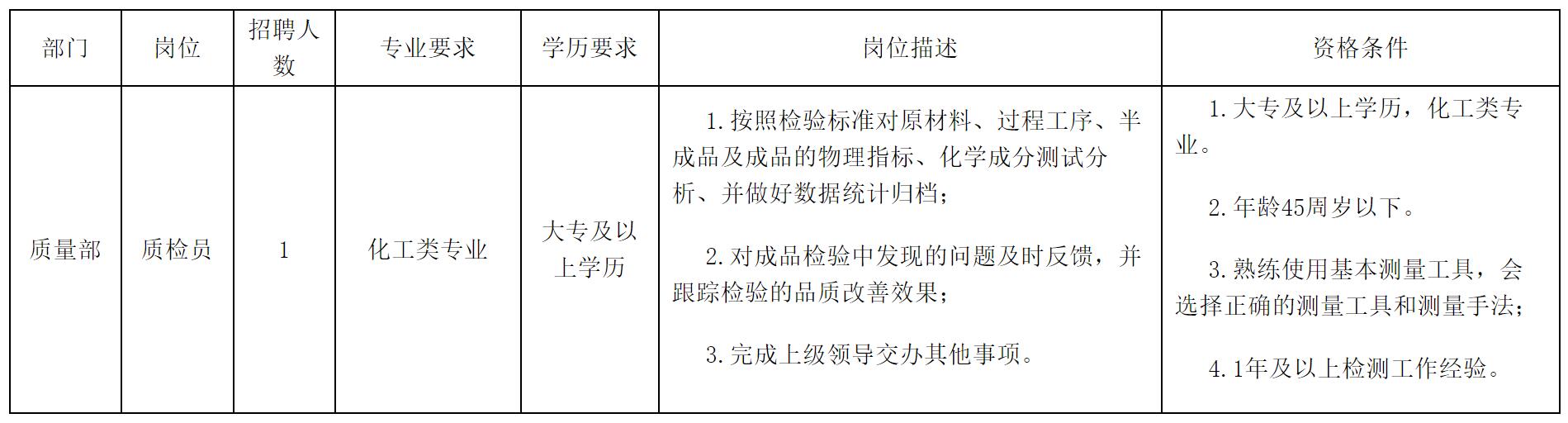 四川长虹新材料科技有限公司关于招聘质检员岗位的公告