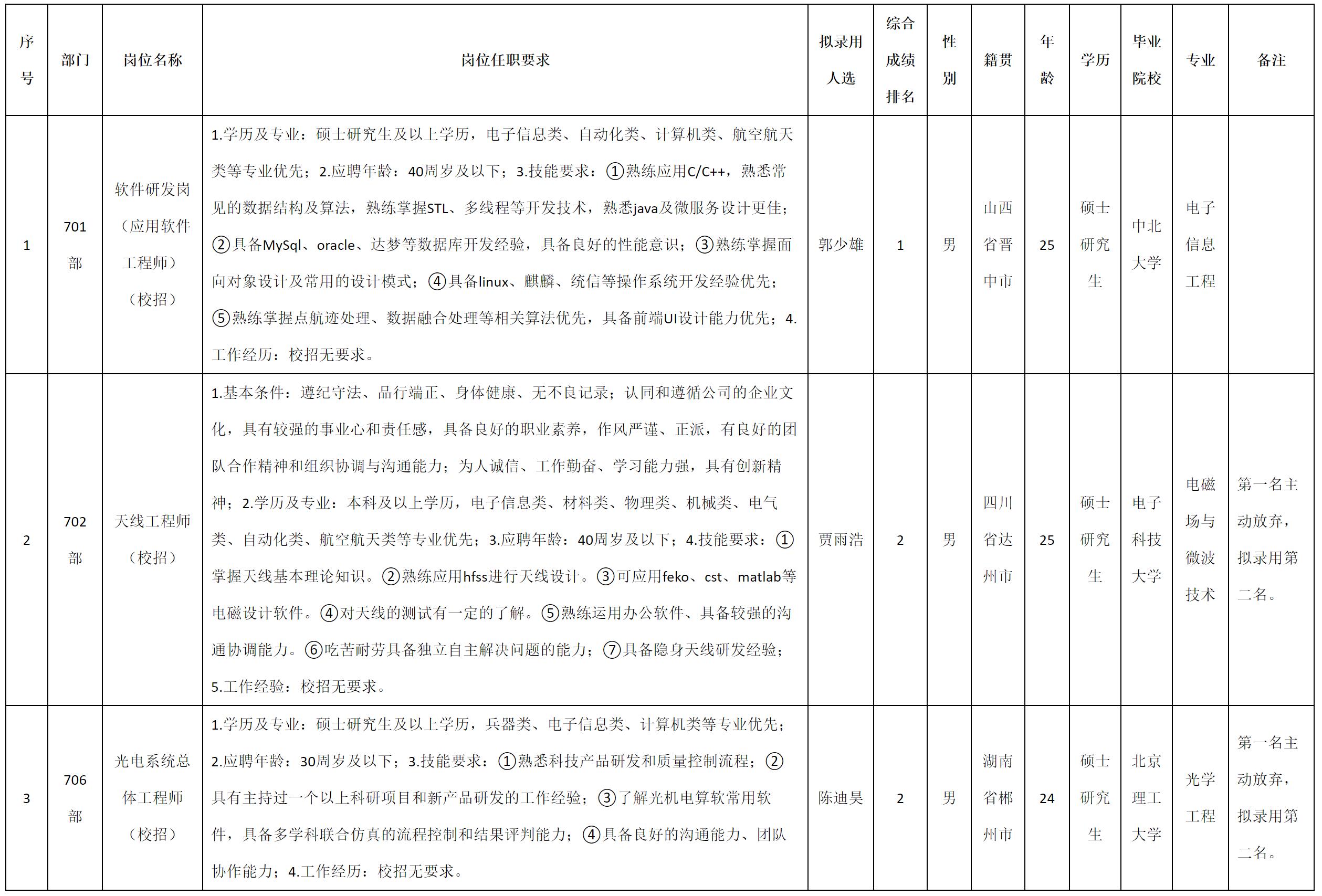 根据四川九洲电器集团有限责任公司发布的招聘公告及招聘相关规定,经测试、考察、体检等程序,拟录用郭少雄等3名同志到四川九洲电器集团有限责任公司工作,现予以公示,具体情况如下:
