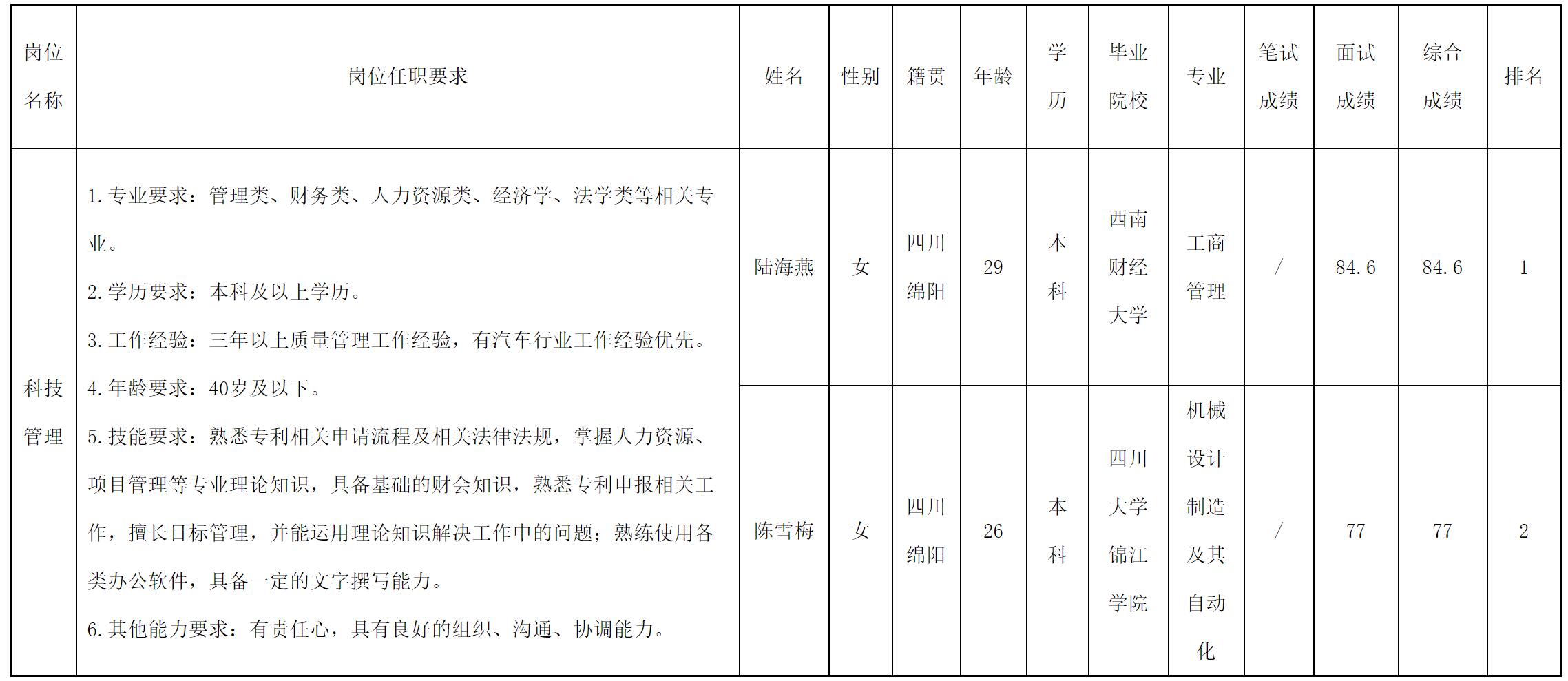 根据四川爱创科技有限公司发布的招聘公告及招聘相关规定,现将测试成绩予以公示。