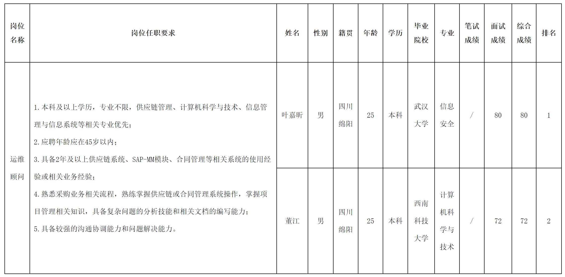 根据四川虹信软件股份有限公司发布的招聘公告及招聘相关规定,现将测试成绩予以公示。