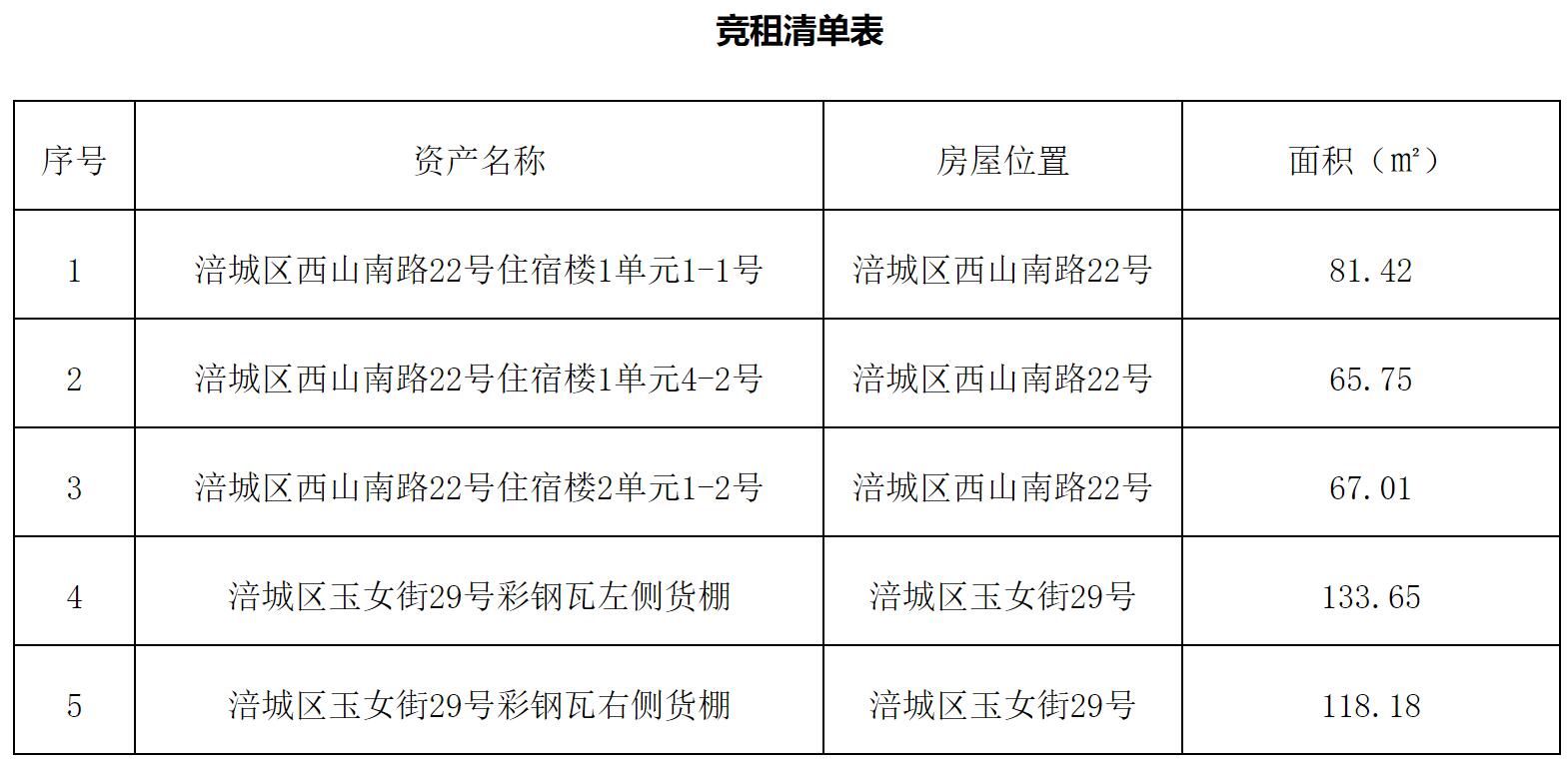 绵阳市粮油集团有限公司营销分公司现将公司代管位于涪城区西山南路22号住宿楼3套及涪城区玉女街29号货棚的部分资产面向社会进行公开竞价招租(详见竞租清单表),现将有关事宜公告如下: