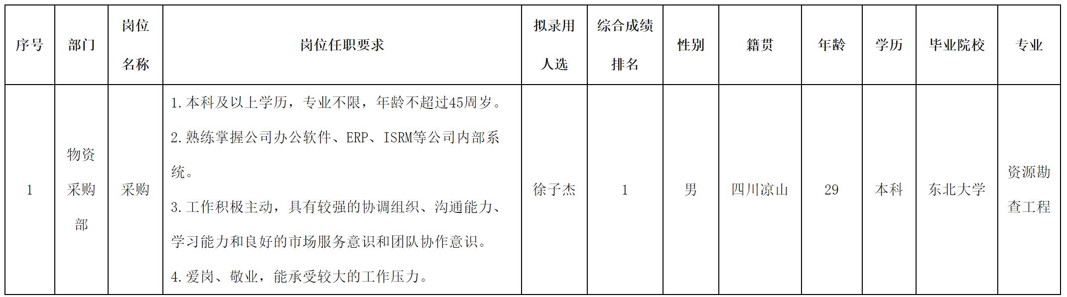根据四川长虹新网科技有限责任公司发布的招聘公告及招聘相关规定,经面试、考察、体检等程序,拟录用徐子杰同志到公司工作,现予以公示,具体情况如下: