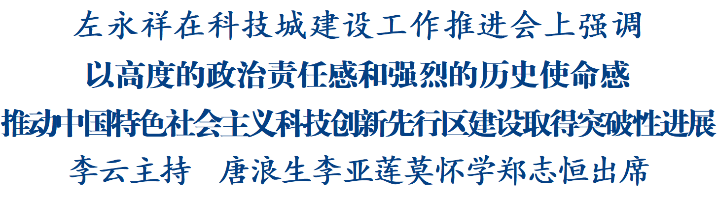 左永祥在讲话中充分肯定了科技城建设取得的成绩。他指出,深化科技城建设管理体制机制改革是科技城建设历程中的一件大事,是更好履行科技城新使命新任务的必然要求和统筹科技城建设的迫切需要。全市上下要切实提高政治站位,深刻认识这一重大改革的极端重要性和现实紧迫性,自觉把思想和行动统一到市委决策部署上来,把智慧和力量凝聚到改革各项任务上来,不折不扣抓好落实,切实把科技城建设管理体制机制改革动能转化为科技城建设效能,扎实推动科技城高质量发展。