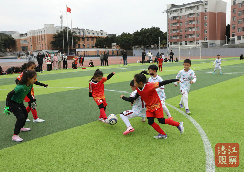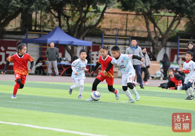 比赛一开始,江油女足的小队员们便开始展现出较为娴熟的足球技巧,他们在五人制足球场上与同年龄段的男孩们奋力争抢。别看孩子们小小的个子,面对双语学校的男队员,这些女孩一点也不胆怯,总是想方设法突破对方防守。对方有好几次射门,大都被江油女足队员防守成功,守门员也勇敢地夺下了几次射门。双方在球场上你拼我抢,几乎可以说势均力敌。总的来看,这些小球员们的传球、停球、射门技巧已经有了较好的表现。