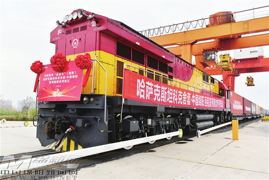 2023年10月25日,绵阳首趟回程班列抵达(哈萨克斯坦科克舍套-中国绵阳)。 视觉绵阳资料图