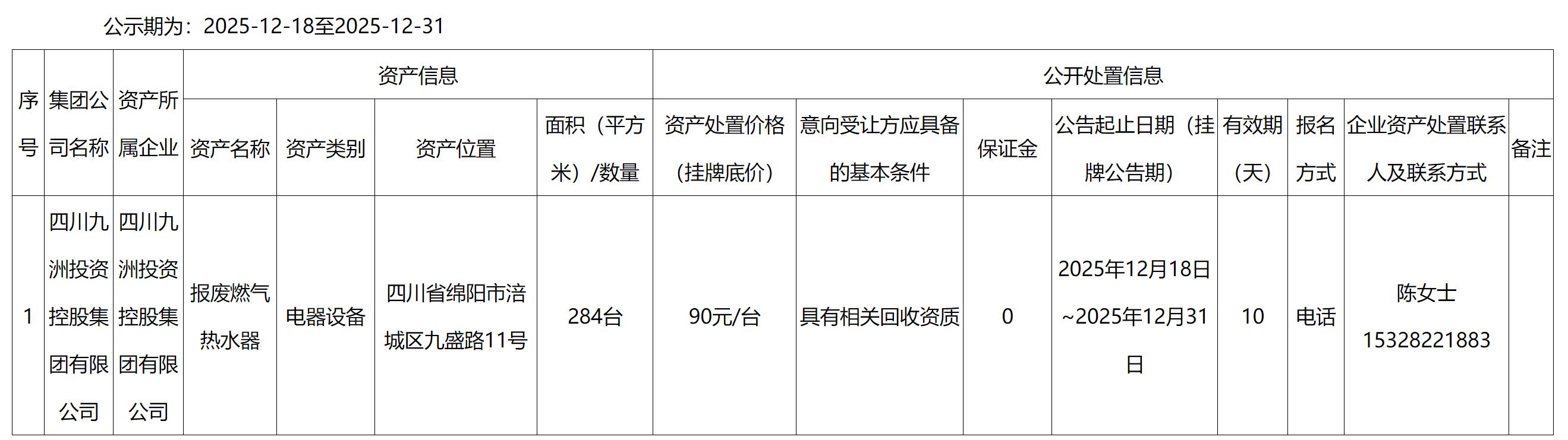 九洲集团科技工业园区公寓燃气热水器处置公告