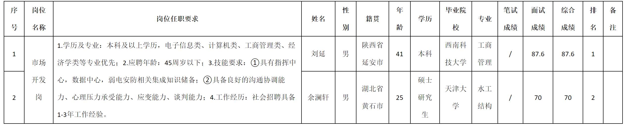 四川九洲电器集团有限责任公司关于招聘市场开发岗测试成绩的公示