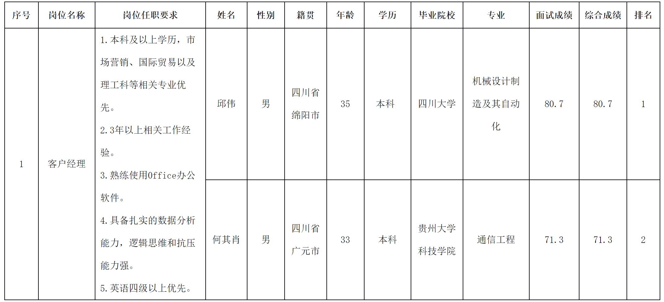 根据四川能创智电科技有限责任公司发布的招聘公告及招聘相关规定,现将测试成绩予以公示。