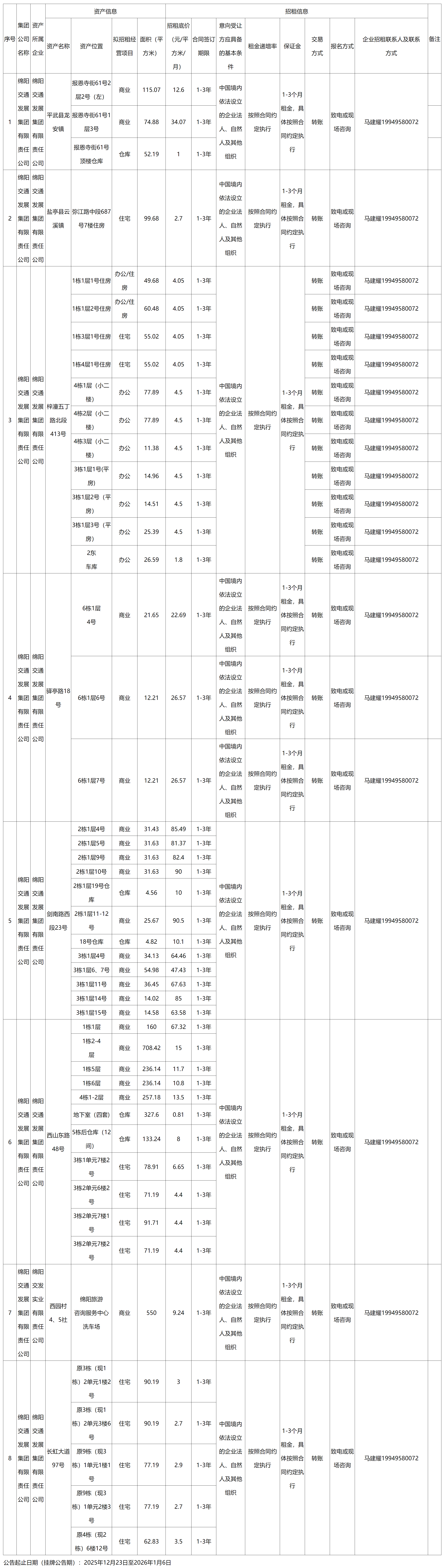 绵阳交发实业有限责任公司绵阳市区内外部分资产招租公告