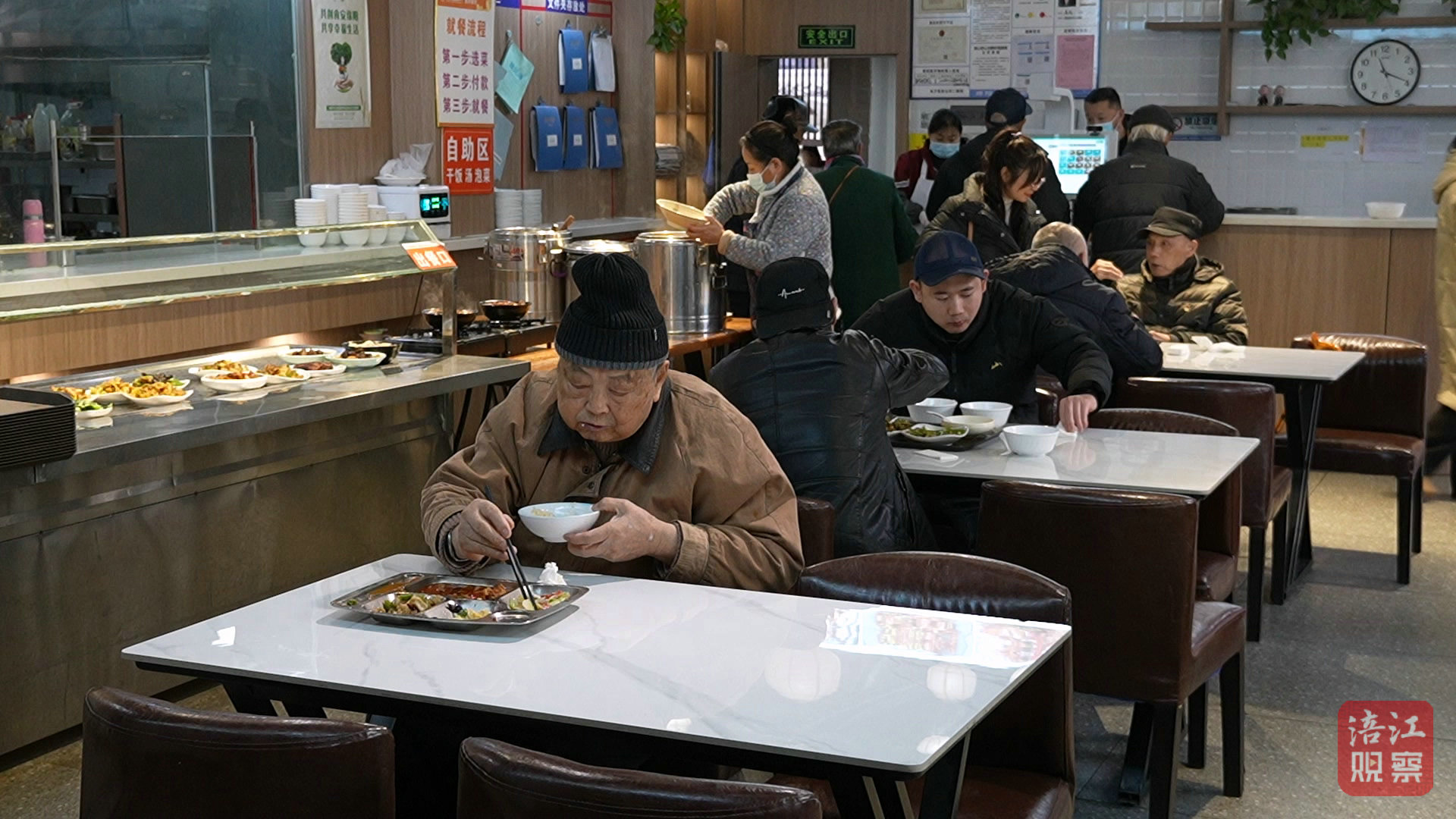 “我家离得近,这里环境干净,吃饭的基本是街坊熟人,像个特别的社交空间,一边吃饭一边聊天,感觉很幸福。”正在用餐的王大爷表示。