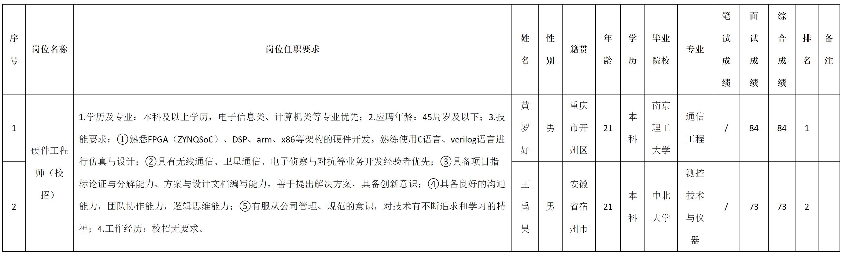 根据四川九洲电器集团有限责任公司发布的招聘公告及招聘相关规定,现将测试成绩予以公示。