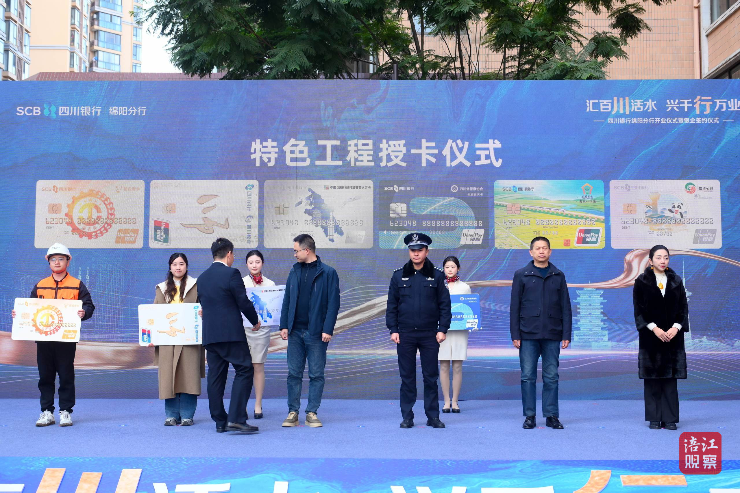 随后,四川银行绵阳分行开业仪式在绵阳121大楼举行。四川银行现场推介特色工程,并为特色工程客户代表授卡,与多家代表企业现场签约。